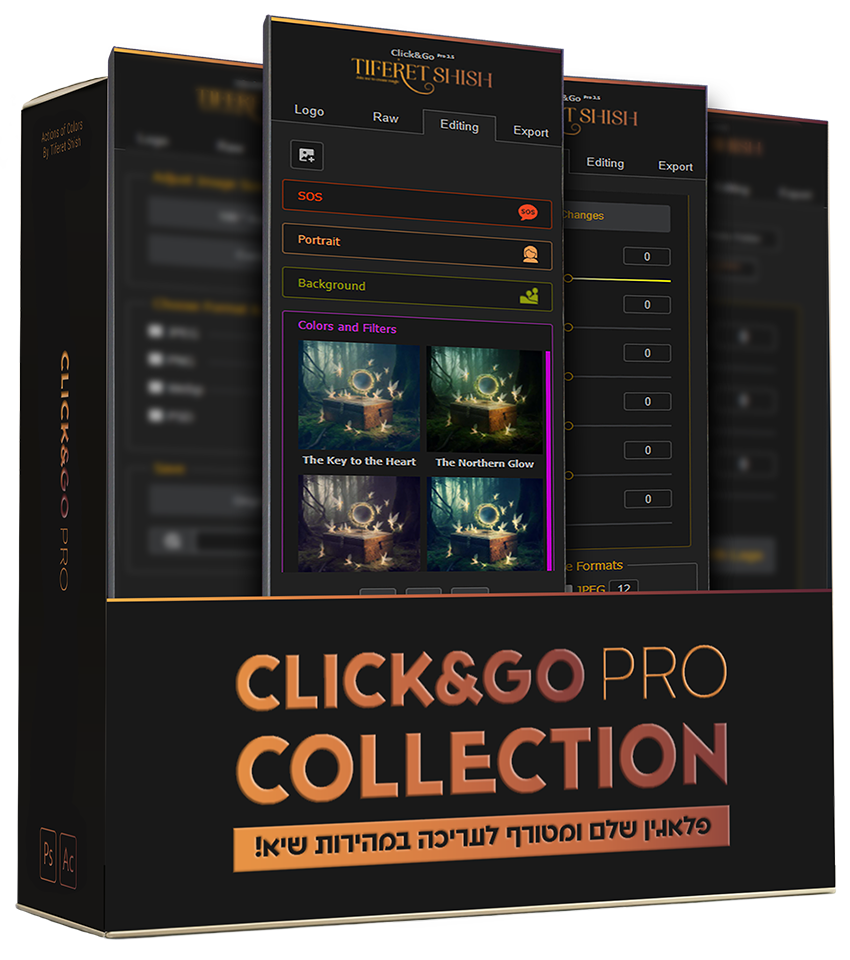 החלקת עור, חדות, תיקוני צבע, עומק, תאורה, אוירה, מסננים ופילטרים, מיזוג שכבות, יבוא, יצוא…